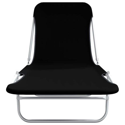 Lettini Prendisole Pieghevoli 2 pz in Acciaio e Tessuto Nero