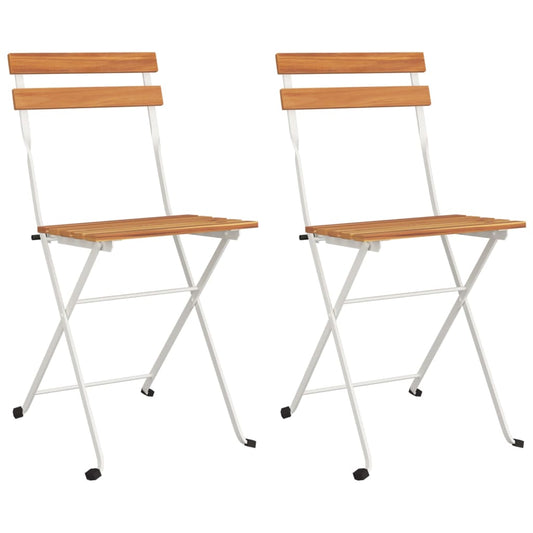 Folding Bistro Chairs 2 pcs Solid Acacia Wood and Steel