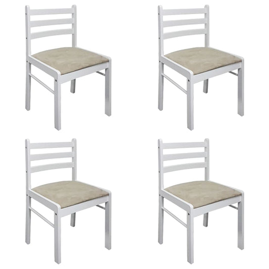 Sedie da Pranzo 4 pz Bianche Legno Massello di Hevea e Velluto
