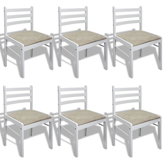 Sedie da Pranzo 6 pz Bianche in Legno Massello e Velluto