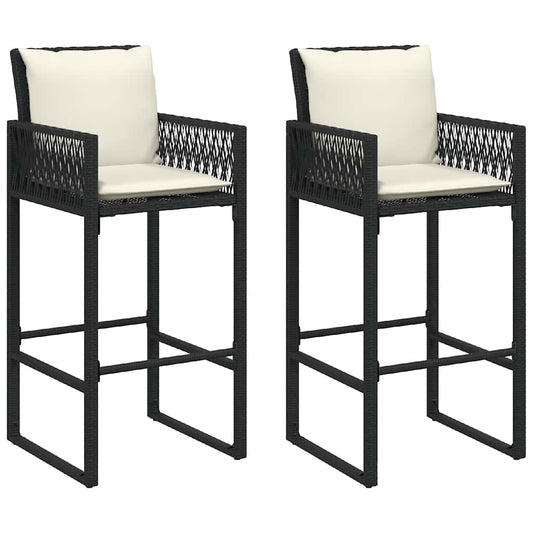 Sgabelli da Bar con Cuscini 2 pz Neri in Polyrattan