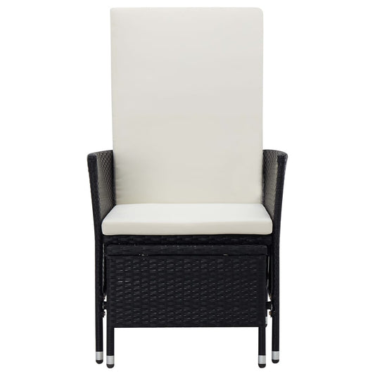 Reclining Garden Chair with Cushion in Black Polyrattan