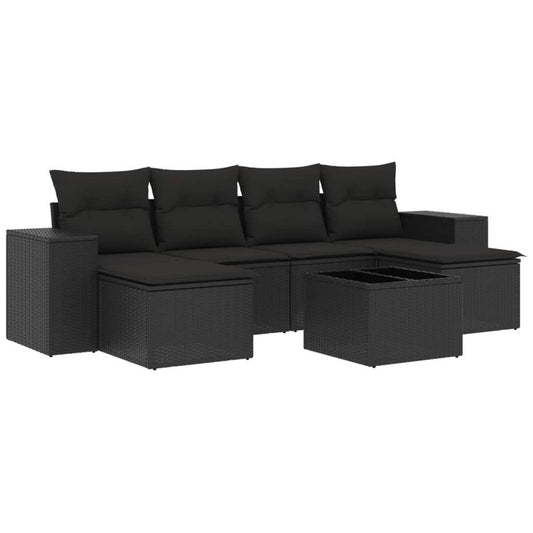 Set Divani da Giardino con Cuscini 7pz Nero Polyrattan