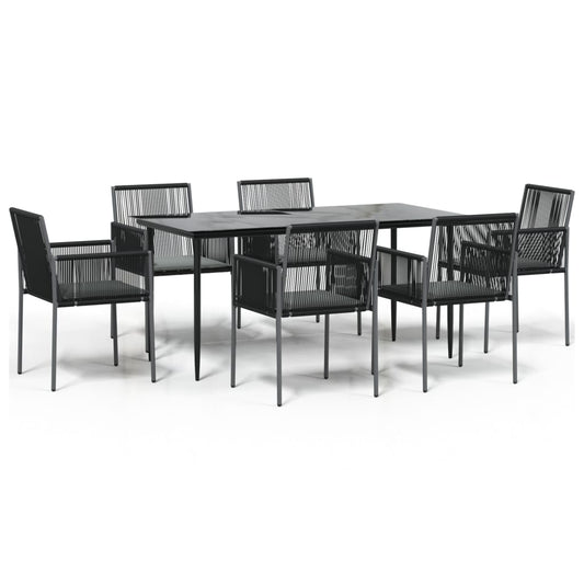 Set da Pranzo da Giardino 7 pz Nero in Polyrattan