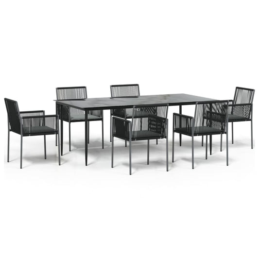 Set da Pranzo da Giardino 7 pz Nero con Cuscini in Polyrattan