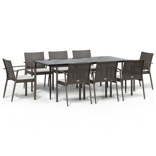 Set da Pranzo da Giardino con Cuscini 9 pz Marrone e Nero