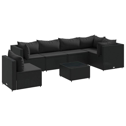 Set Salotto da Giardino con Cuscini 7pz Nero Polyrattan