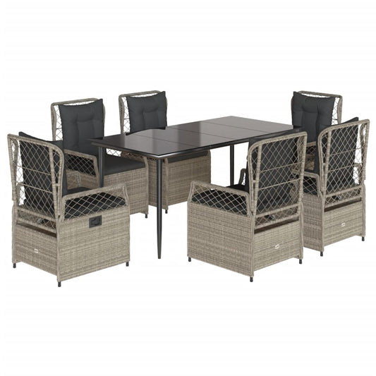 Set da Pranzo da Giardino 7 pz Cuscini Polyrattan Grigio Chiaro