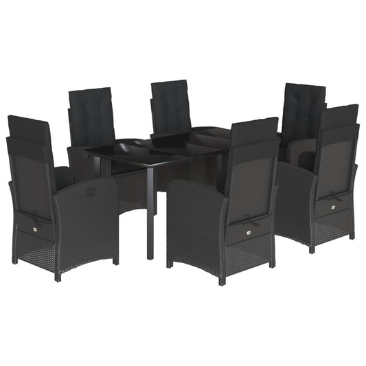 Set da Pranzo da Giardino 7 pz Nero con Cuscini in Polyrattan