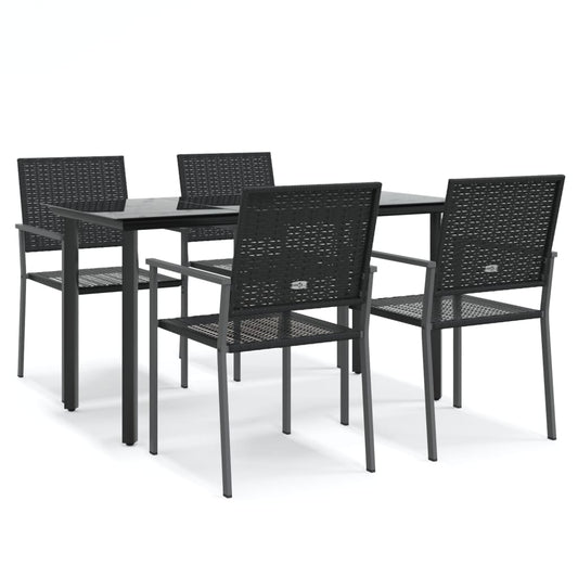 Set da Pranzo da Giardino 5 pz Nero con Cuscini in Polyrattan