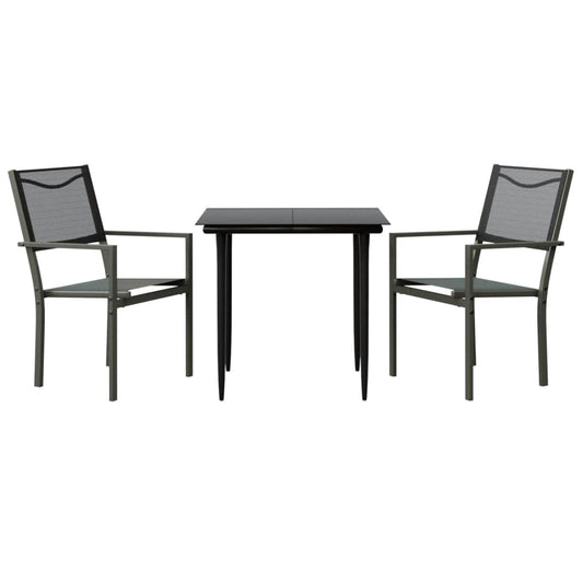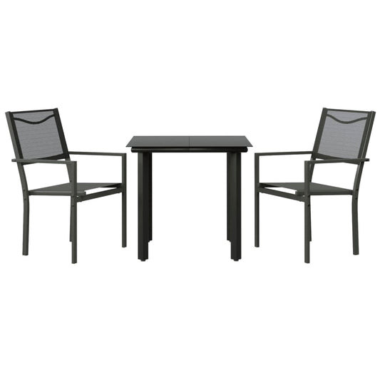 Set da Pranzo da Giardino 3 pz Nero in Acciaio e Textilene