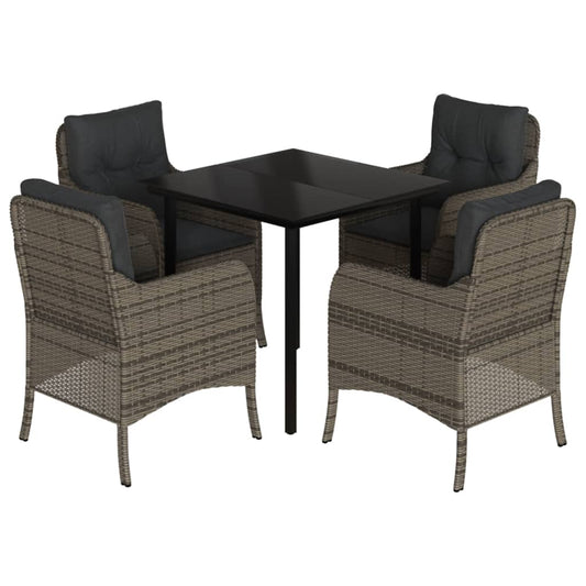 Set da Pranzo da Giardino 5 pz con Cuscini in Polyrattan Grigio