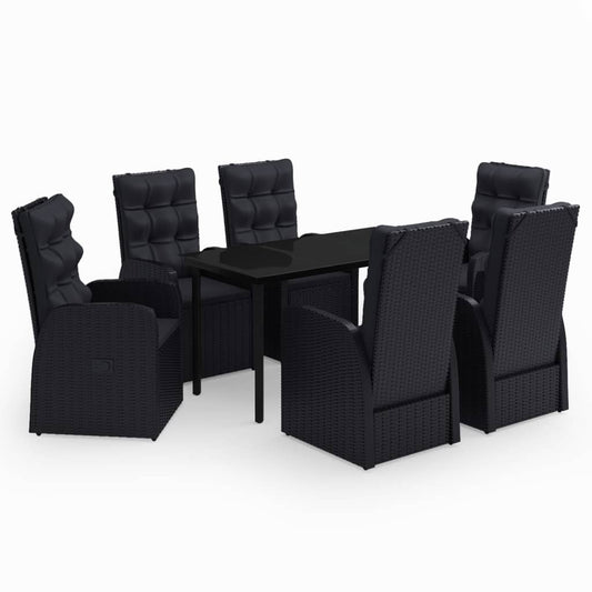 Set da Pranzo da Giardino 7 pz con Cuscini Nero