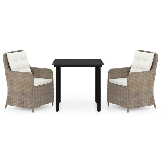 Set da Pranzo da Giardino 3 pz con Cuscini Beige e Nero