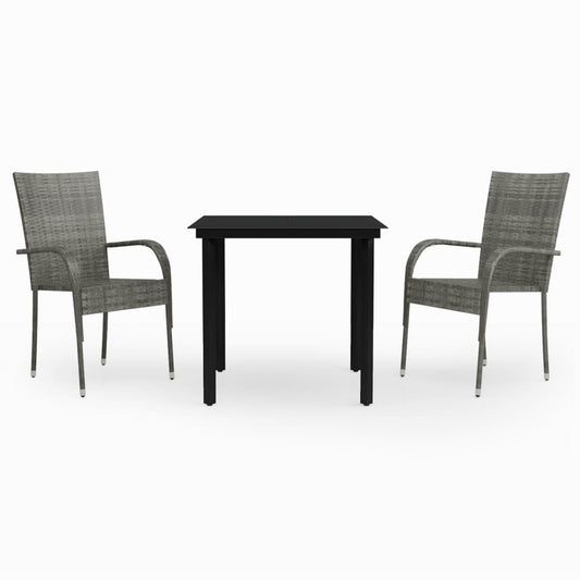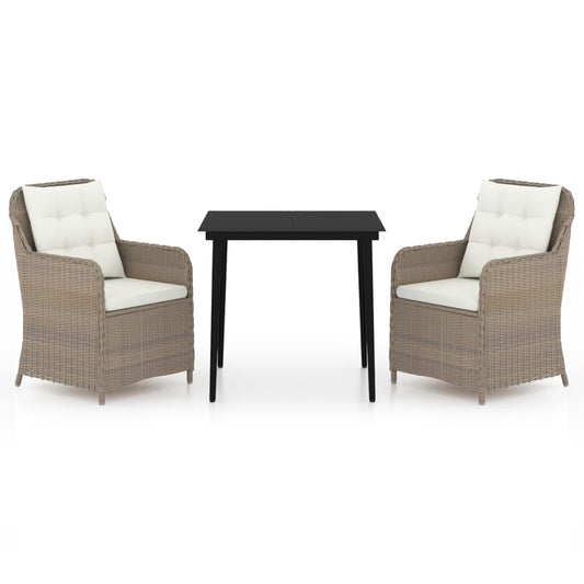 Set da Pranzo da Giardino 3 pz con Cuscini Grigio