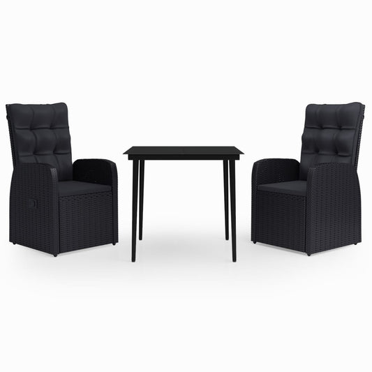 Set da Pranzo da Giardino 3 pz Nero in Polyrattan