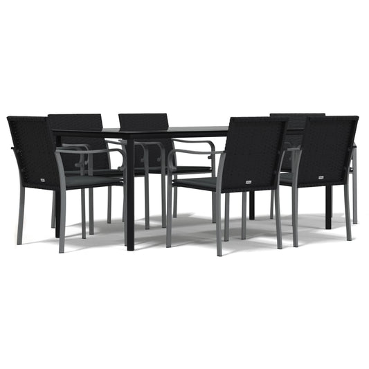 Set da Pranzo da Giardino 7 pz Nero con Cuscini in Polyrattan