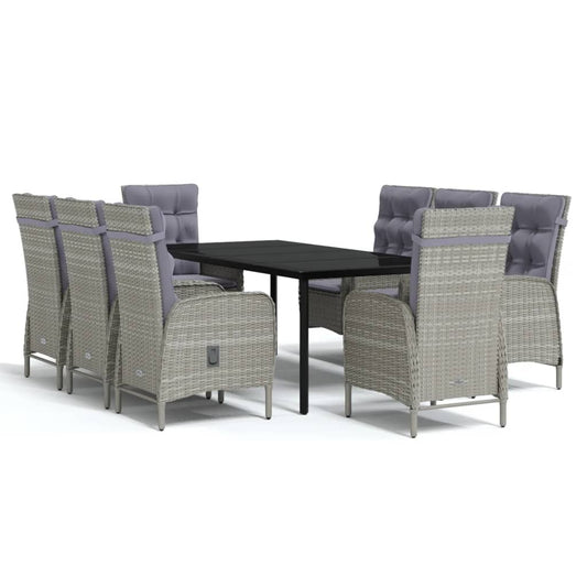 Set da Pranzo da Giardino 9 pz con Cuscini Grigio
