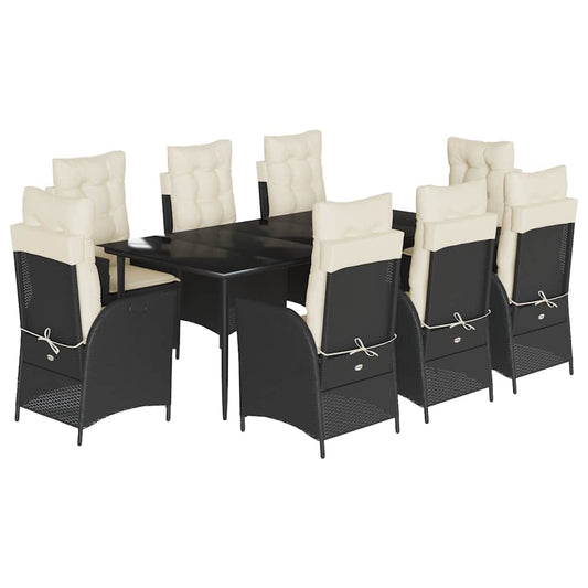 Set da Pranzo da Giardino 9 pz con Cuscini Nero in Polyrattan