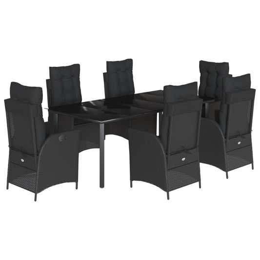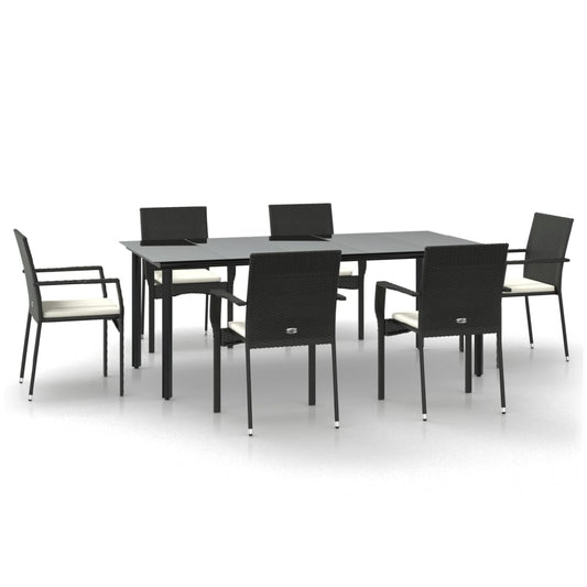 Set da Pranzo da Giardino 7 pz Nero con Cuscini in Polyrattan