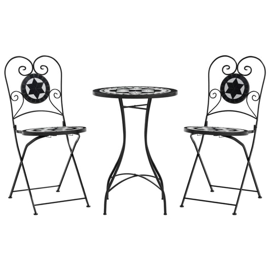 Set da Bistrot con Mosaico Nero e Bianco in Ferro e Ceramica