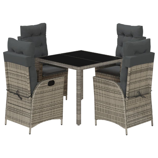 Set da Pranzo da Giardino 5 pz con Cuscini in Polyrattan Grigio