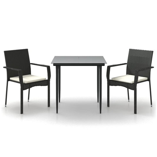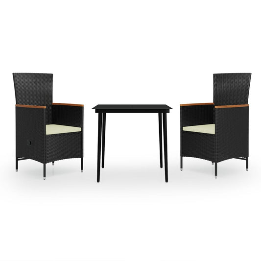 Set da Pranzo da Giardino 3 pz con Cuscini Nero in Polyrattan