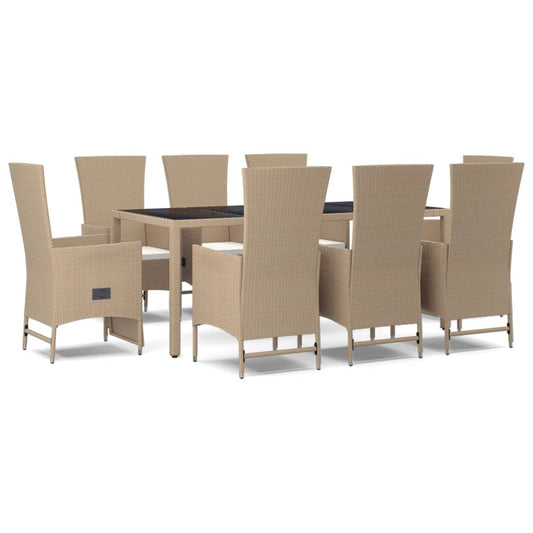 Set Pranzo da Giardino 9 pz con Cuscini Beige Misto Polyrattan