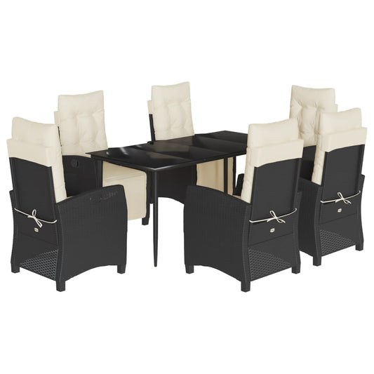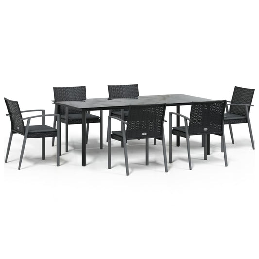 Set da Pranzo da Giardino 7 pz Nero con Cuscini in Polyrattan