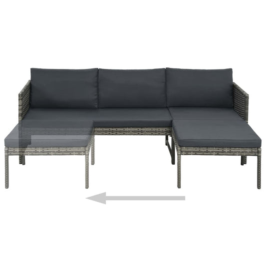 Set Divani da Giardino 3 pz con Cuscini in Polyrattan Grigio