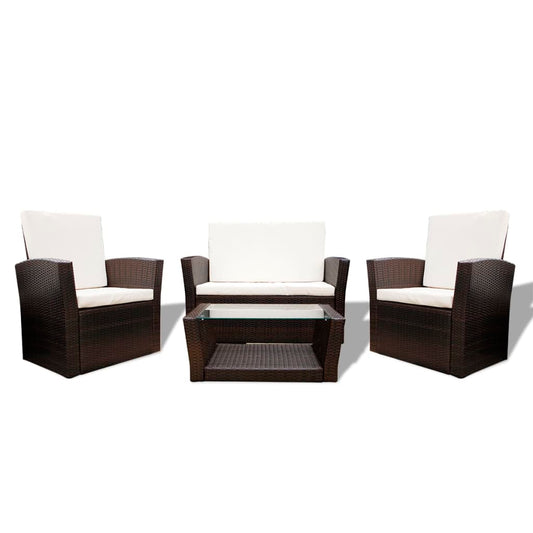 Set Divani da Giardino 4 pz con Cuscini in Polyrattan Marrone