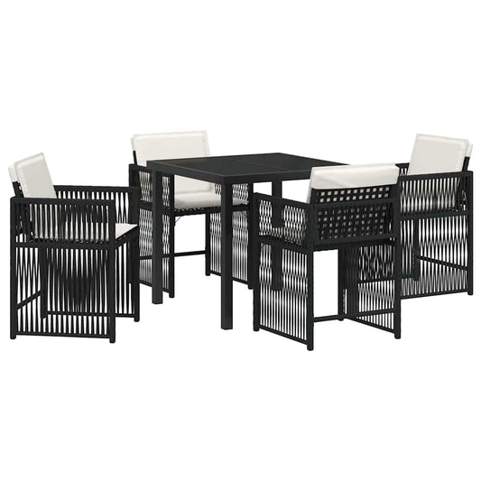 Set da Pranzo per Giardino 5 pcs Nero polyrattan