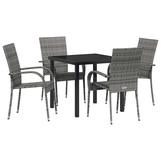 Set da Pranzo per Giardino 5 pcs Grigio Poly Rattan