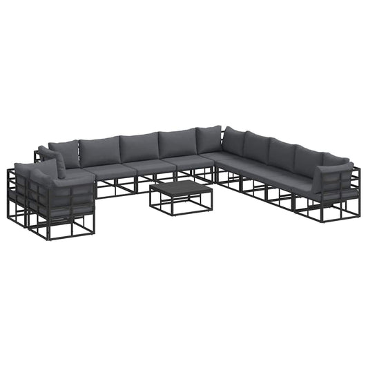 Set Divano da Giardino con cuscino 13 pcs Nero Alluminio