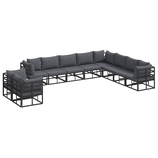 Set Divano da Giardino con cuscino 11 pcs Nero Alluminio