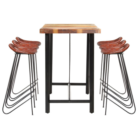 Set da Bar 7 pz in Legno Massello di Recupero Vera Pelle e Tela