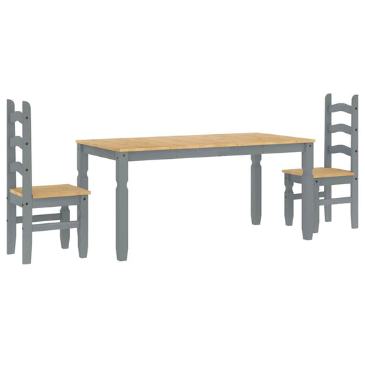Set da Pranzo 3 pz Panama Grigio in Legno Massello di Pino