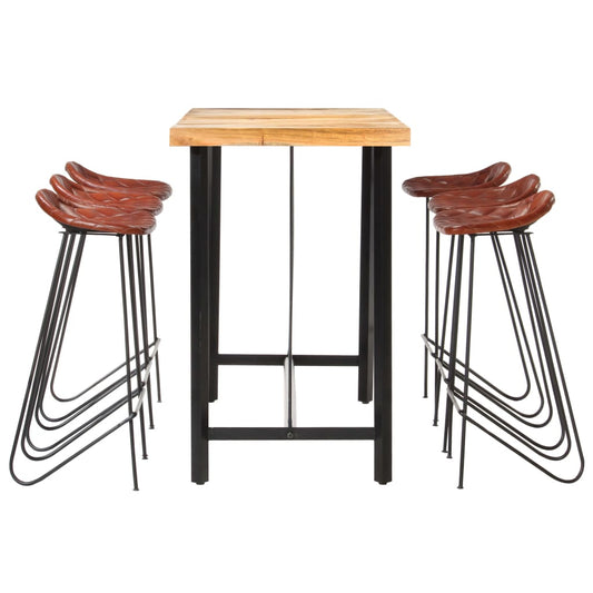 Set da Bar 7 pz in Legno Massello di Acacia e Vera Pelle