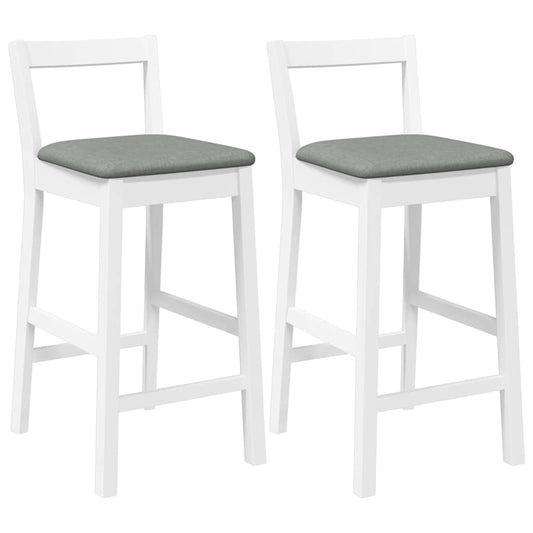 Sgabelli da Bar con Cuscini 2 pz Bianco Legno Massello di Hevea
