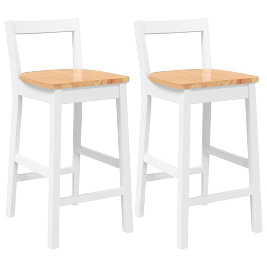 Sgabelli da Bar 2 pz Bianchi in Legno Massello di Hevea