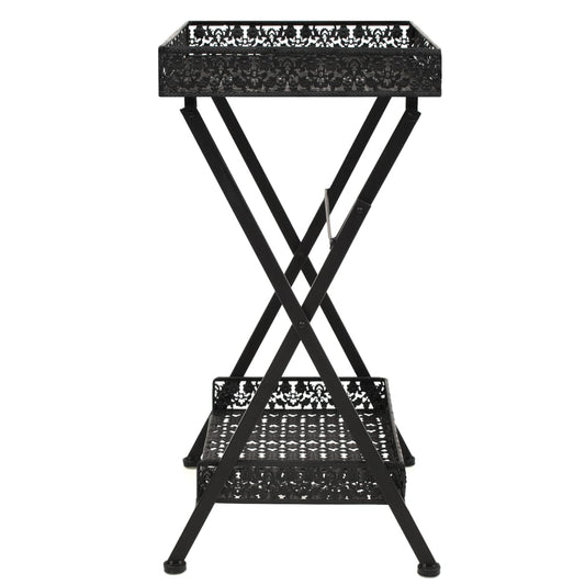 Tavolo da Tè Pieghevole Vintage Metallo 58x35x72 cm Nero