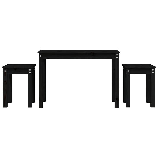 Tavolini a Incastro 3 pz Nero in Legno Massello di Pino