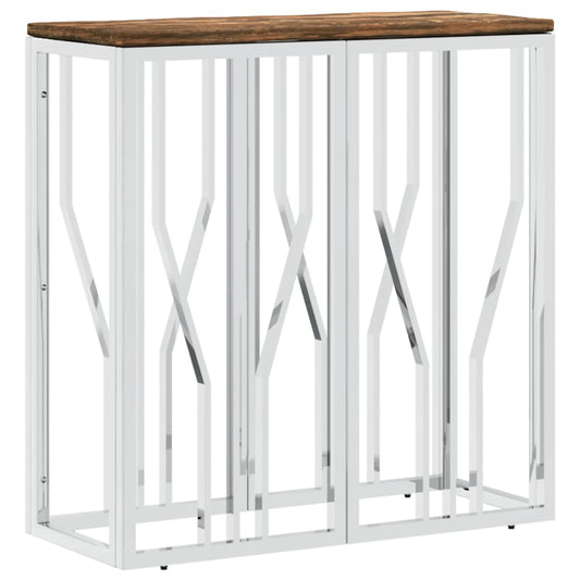 Tavolino Salotto Argento in Acciaio Inox e Legno di Recupero