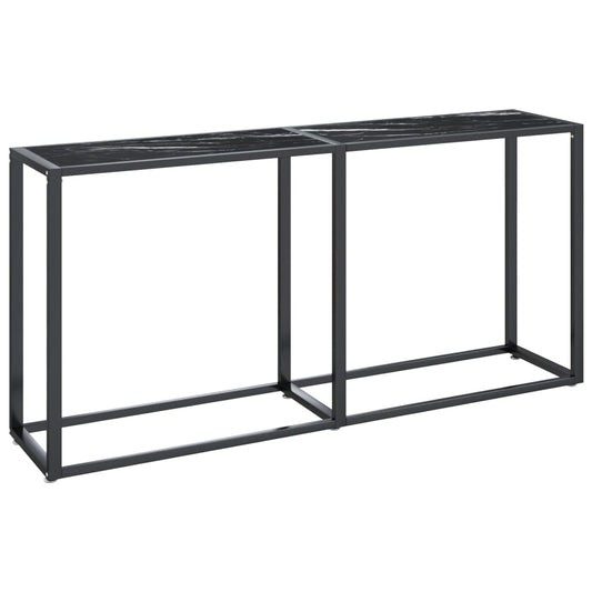 Black Marble Console Table 160x35x75.5 cm in Tempered Glass