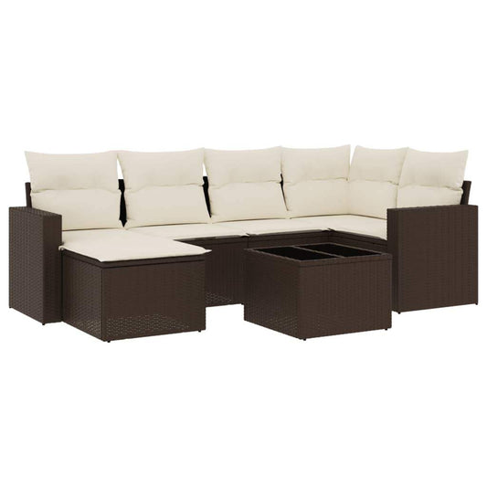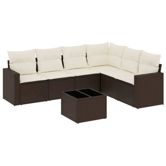 Set Divani da Giardino 7 pz con Cuscini Marrone in Polyrattan