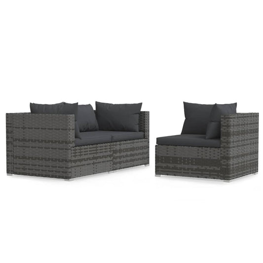Set Divani da Giardino 3 pz con Cuscini in Polyrattan Grigio