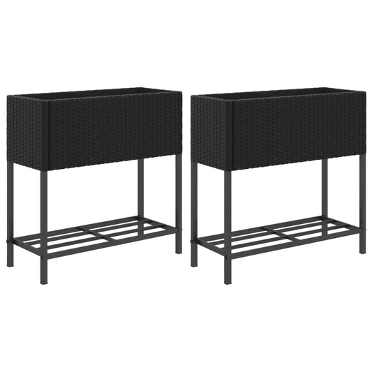 Fioriere da Giardino con Ripiani 2pz Nere 90x40x75cm Polyrattan
