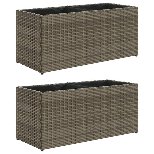 Fioriere da Giardino con 2 Vasi Grigie 90x20x40cm in Polyrattan
