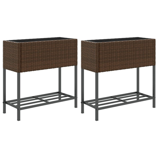 Fioriere Giardino con Ripiani 2pz Marroni 70x28x70cm Polyrattan