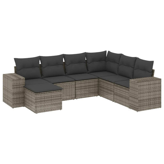 Set Divani da Giardino 7 pz con Cuscini Grigio in Polyrattan